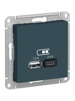 - Розетка Systeme Electric (ранее Schneider Electric) серии AtlasDesign в цвете изумруд двойная USB с разъемами типа A+C
