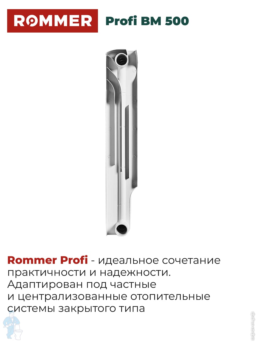 Радиатор биметаллический ROMMER Profi BM 500 6 секций, RBM-1210-050006