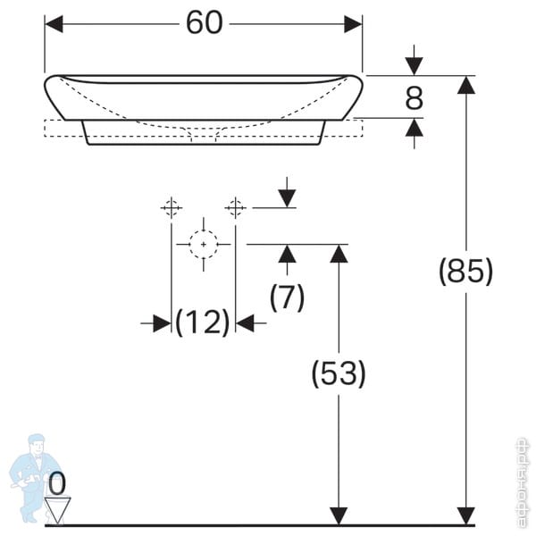 Раковина Geberit MyDay (600х400х130) KeraTeсt без отв. под смеситель, без перелива 245460600