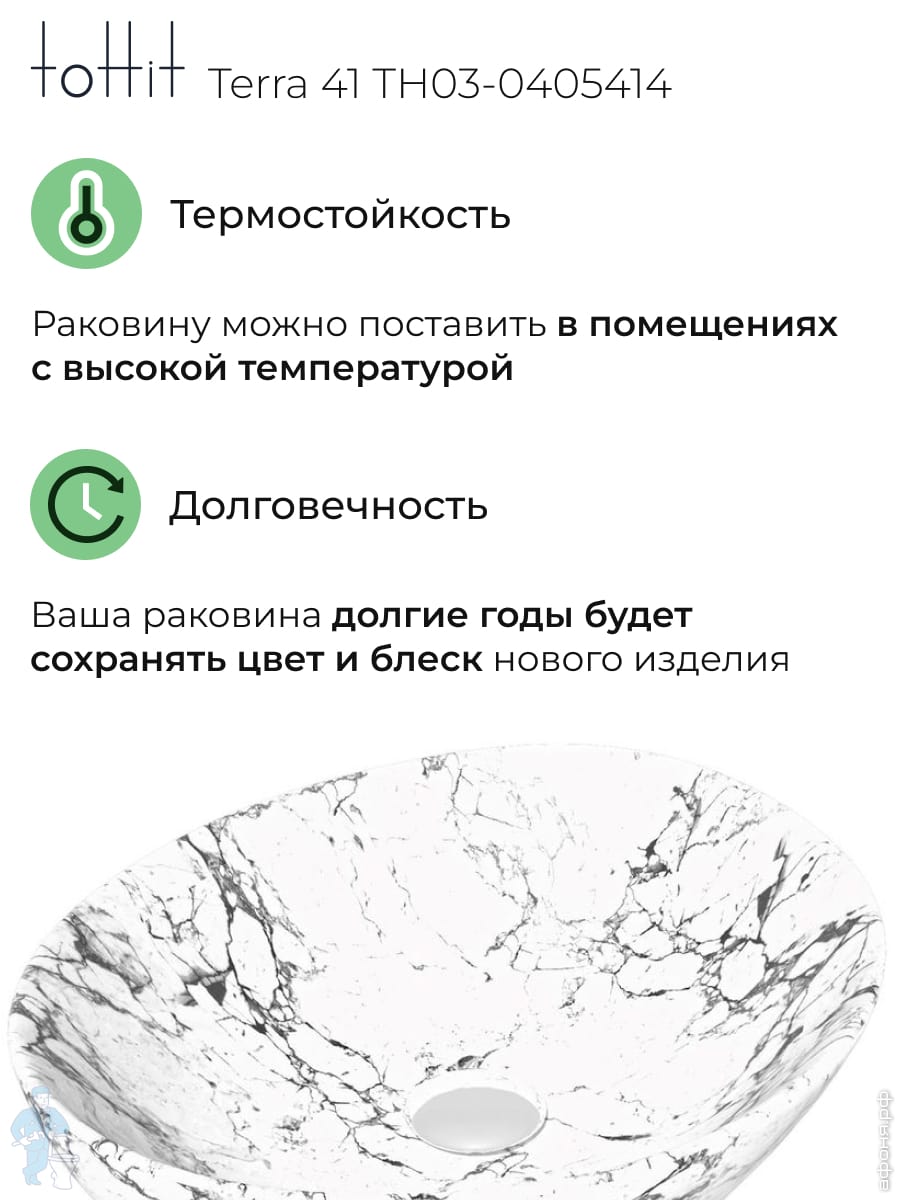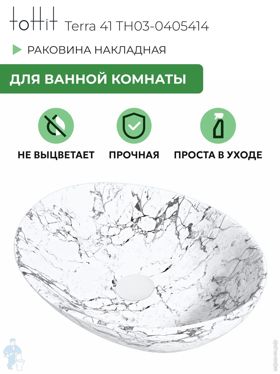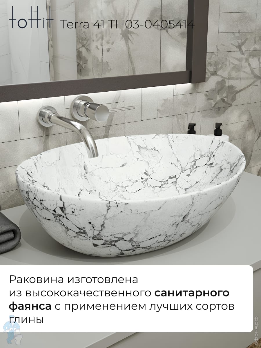 Раковина накладная toHit Terra 41 (410х355х145) без перелива, цвет: белый мрамор TH03-0405414