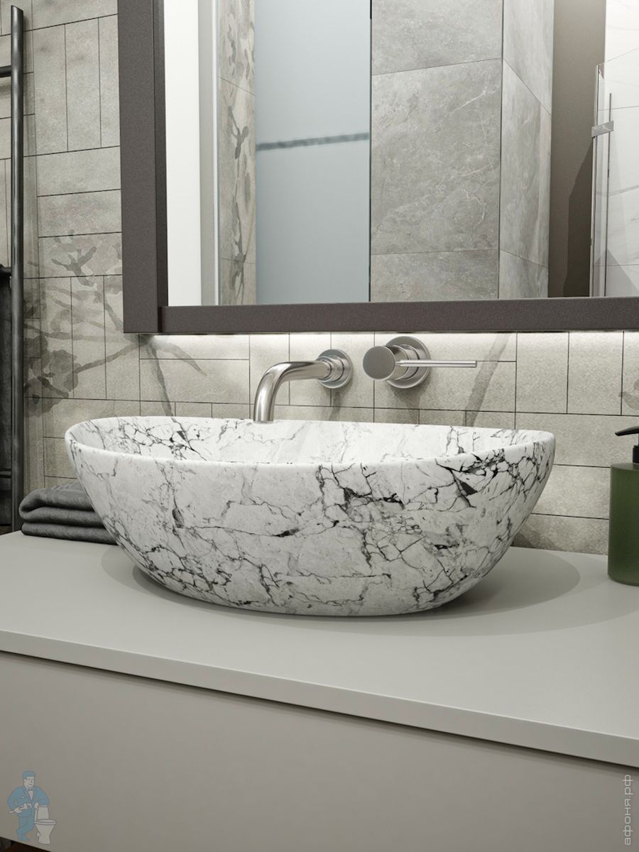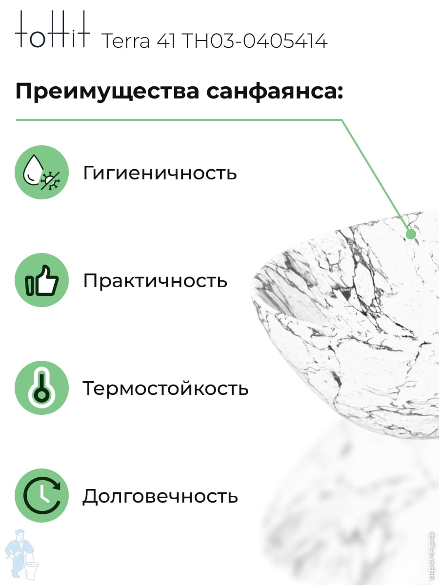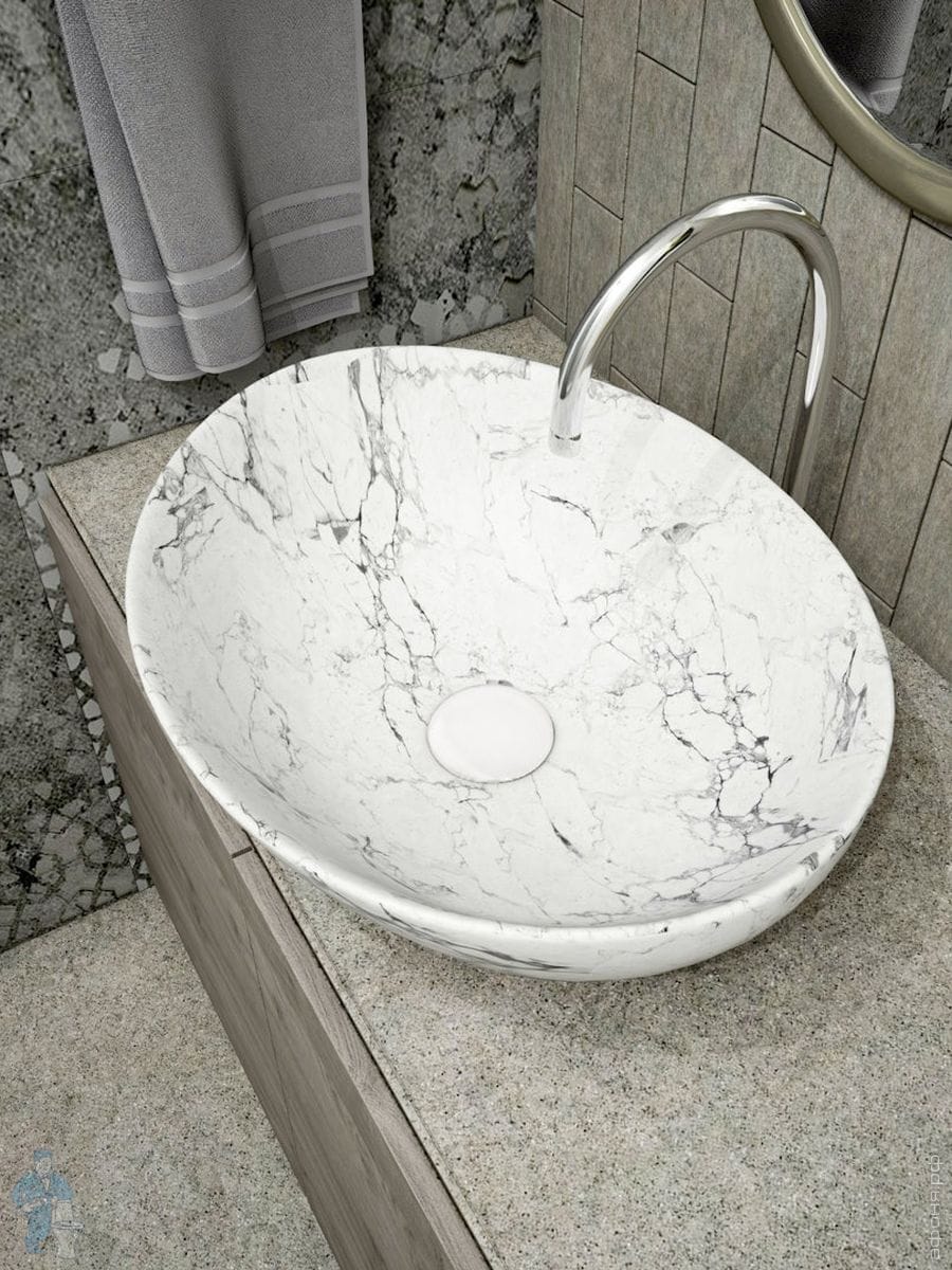 Раковина накладная toHit Terra 41 (410х355х145) без перелива, цвет: белый мрамор TH03-0405414