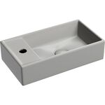 У раковины чаша находится справа, а отверстие под смеситель слева