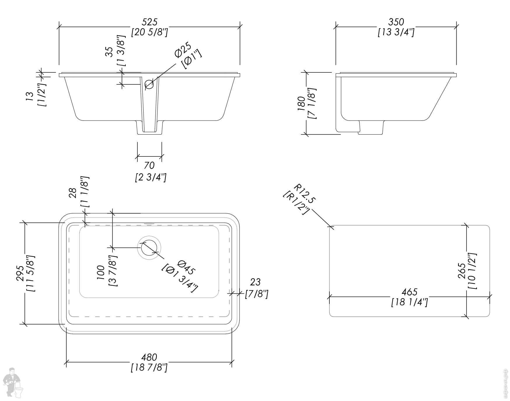 | Вид: | Раковина | ПодВид: | Раковина встраиваемая снизу |