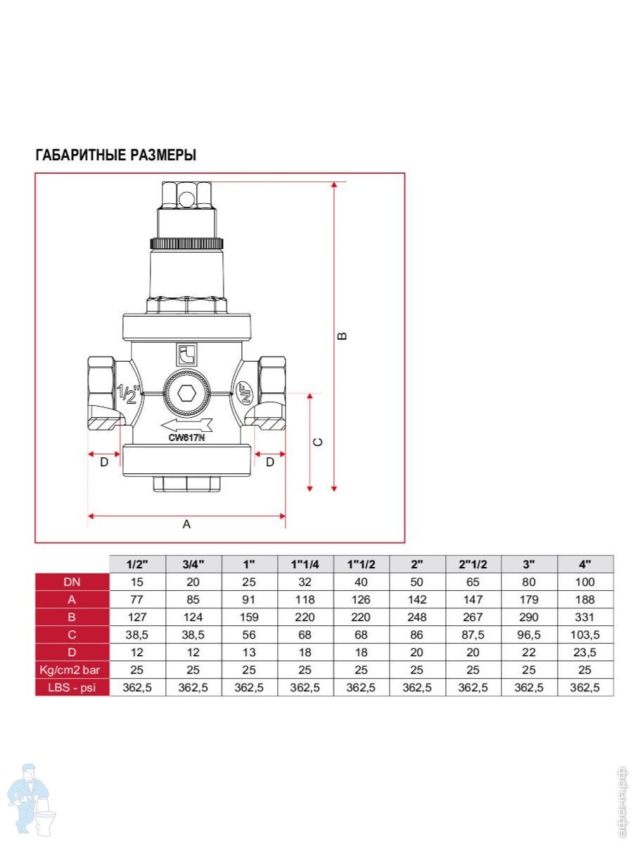 Максимальное входное давление: 25 bar