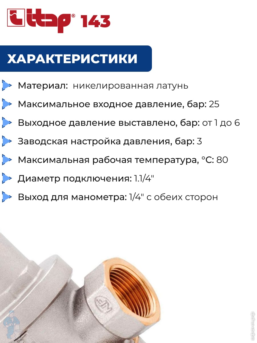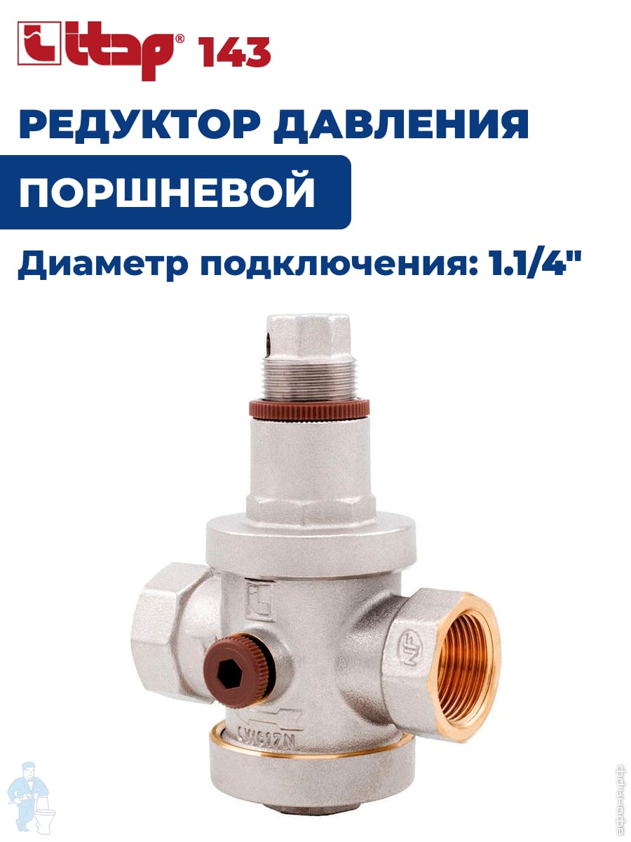 Редуктор давления ITAP 143 1.1/4"ВВ поршневой, под 2 манометра, 1- 6 бар