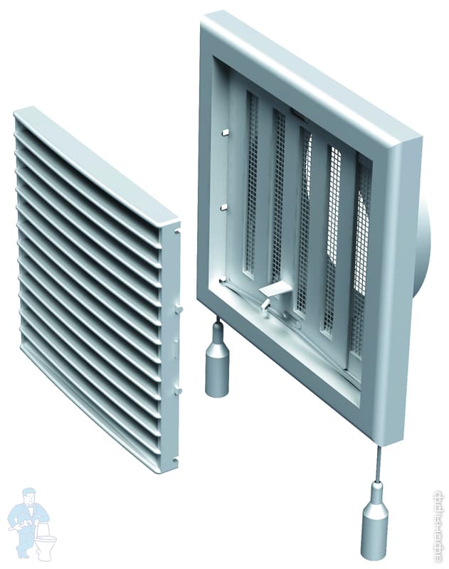 Модель оснащена круглым соединительным фланцем для монтажа с воздуховодом диаметром 100 мм. Имеет подвижную заслонку для регулировки расхода воздуха. Регулировка живого сечения при помощи флажка или шнурков. Возможен монтаж напрямую с вентилятором ВЕНТС ВКО 100.