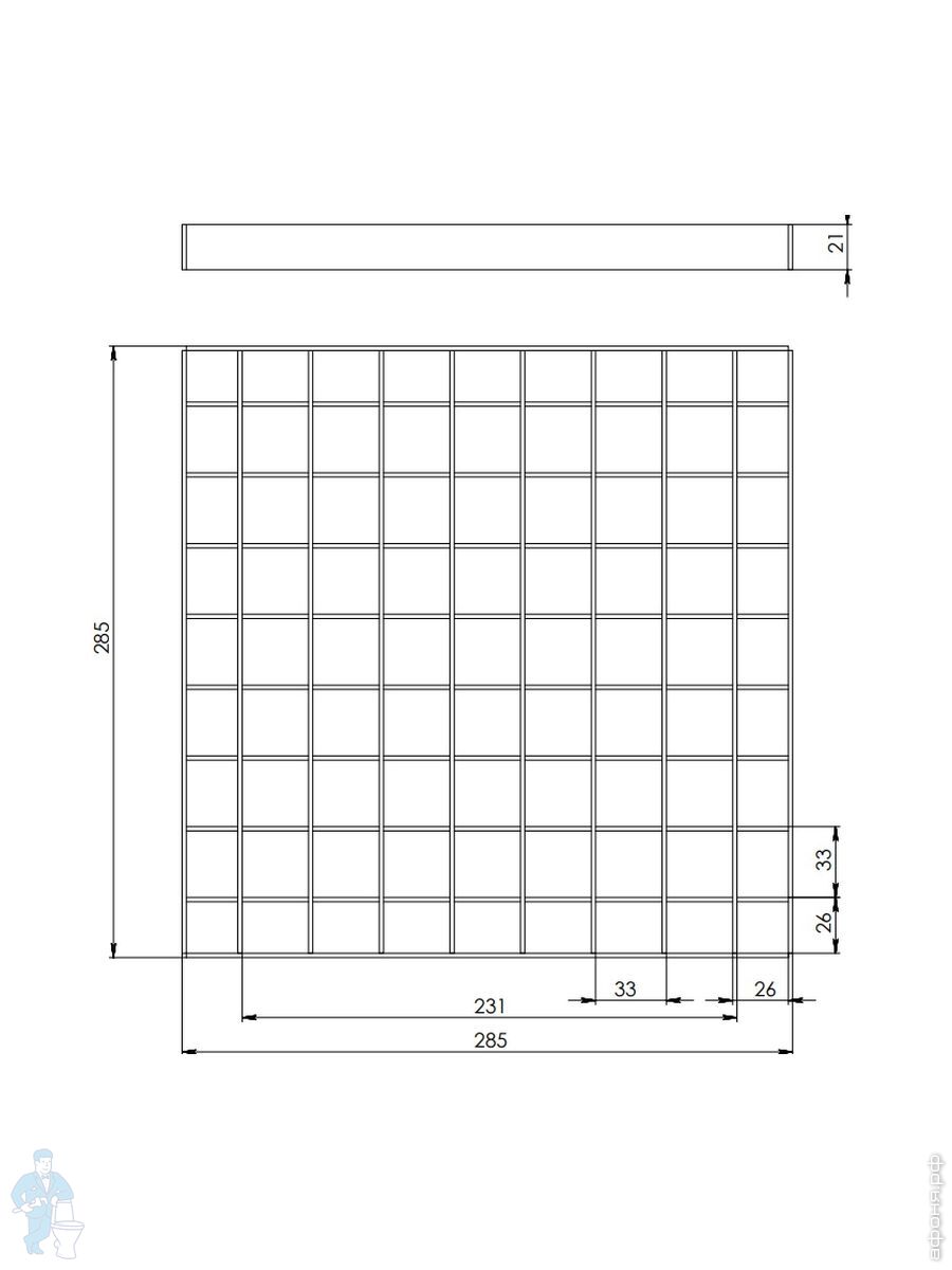 | Длина, мм: | 285 | Ширина, мм: | 285 |