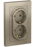 - Розетка двойная Systeme Electric (ранее Schneider Electric) серии AtlasDesign (в сборе, цвет шампань) с заземлением, без шторок подходит для сетей 250 В, на ток 16 А.