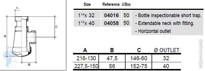 S-69/40 Сифон бутылочный JIMTEN 1 1/2"(40мм) без выпуска, для донного клапана