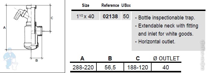 S-70 Сифон бутылочный JIMTEN 1 1/2"(40мм) без выпуска, с отводом для стиральной машины