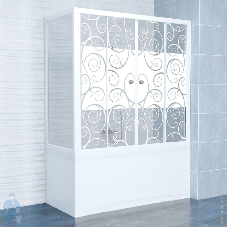 Штора для ванны Triton 1500х1435 2 двери, рифленое стекло, узоры