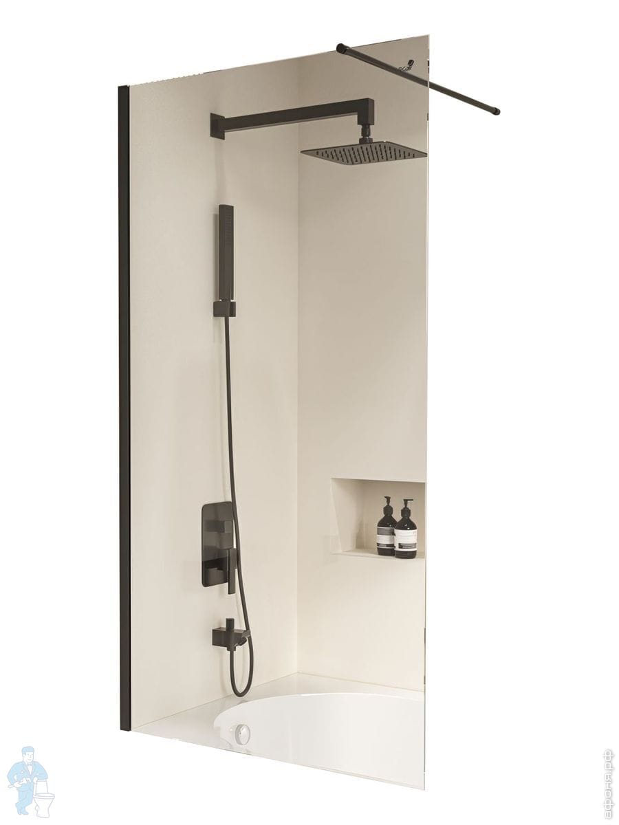 Шторка на ванну RGW SC-050B (700х1490) неподвижная, стекло 6мм прозрачное/черный 351105007-14