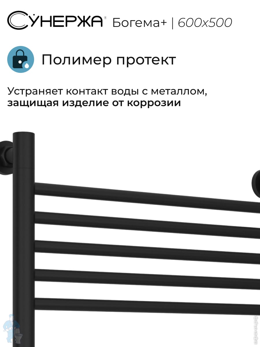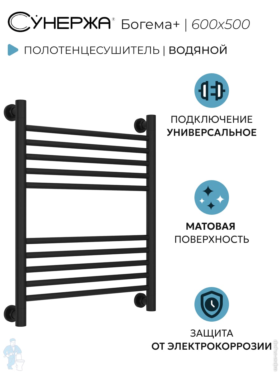СУНЕРЖА Богема+ прямая Полотенцесушитель 600х500 (10 ступ.) черный матовый, унив.под. 3/4"