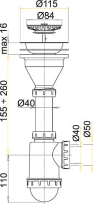 Сифон для мойки Alcaplast A446 пластик с нержавеющей решёткой D115, вых. 50/40