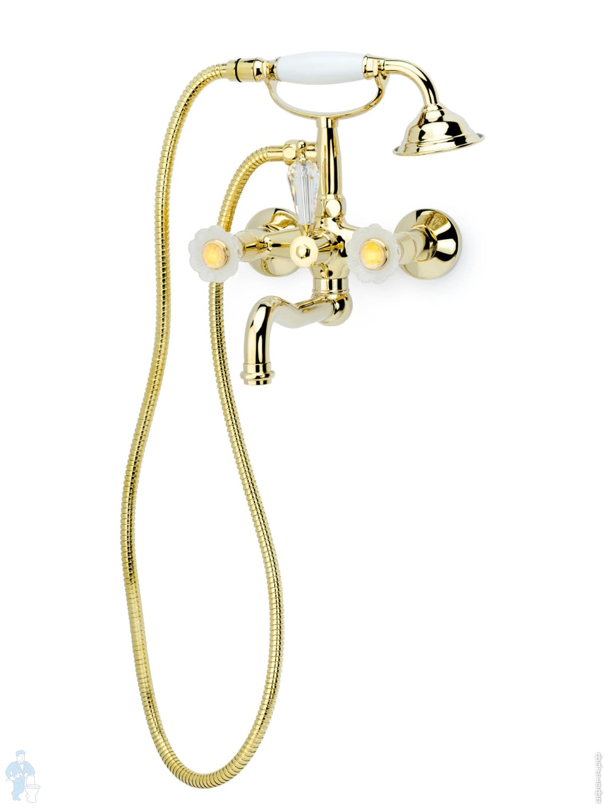 Смеситель Boheme Camelia для ванны/душа, настенный, двухзахв, лейка 1 режим, золото 293-Camelia