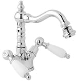 Смеситель CEZARES FIRST BS2-01-Bi для биде, с донным клапаном, излив 155мм, хром/ручки белые