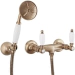 Смеситель CEZARES FIRST D-02-Bi для душа, шланг 150см, лейка, держатель, бронза/ручки белые
