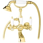 Смеситель CEZARES FIRST VD-03/24-Bi для ванны, излив 150мм, с ручным душем, золото 24кар/ручки белые