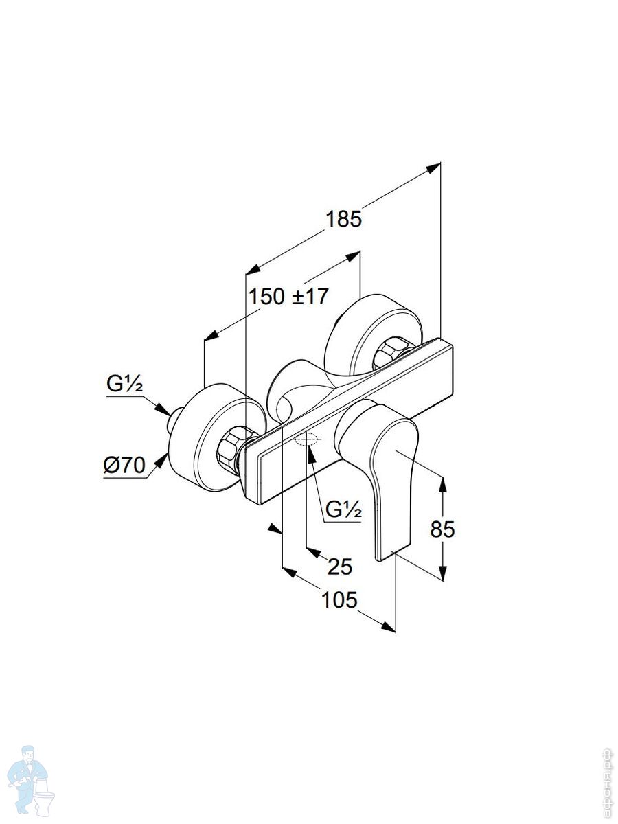 | Высота, мм: | 85 | Межцентровое расстояние, мм: | 150 |