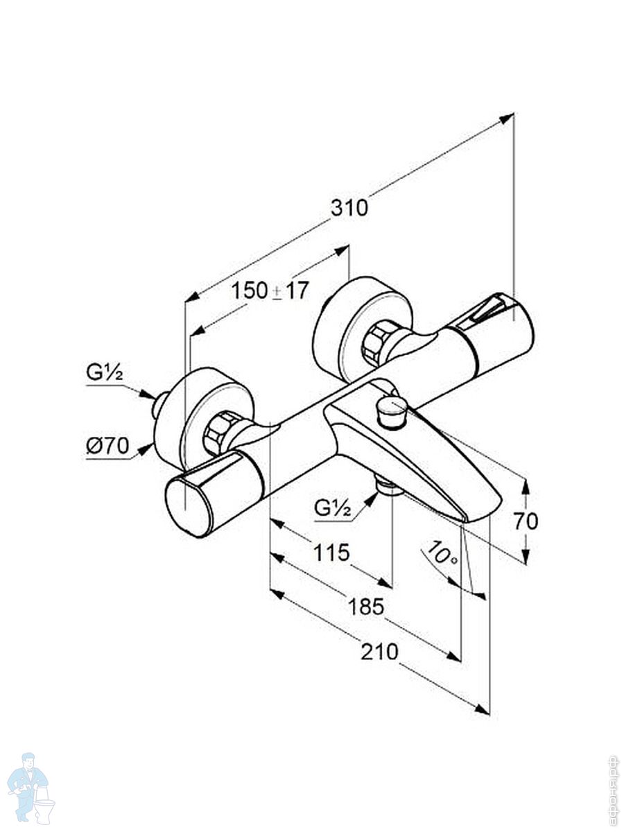 | Вид: | Смеситель | ПодВид: | Настенный смеситель |