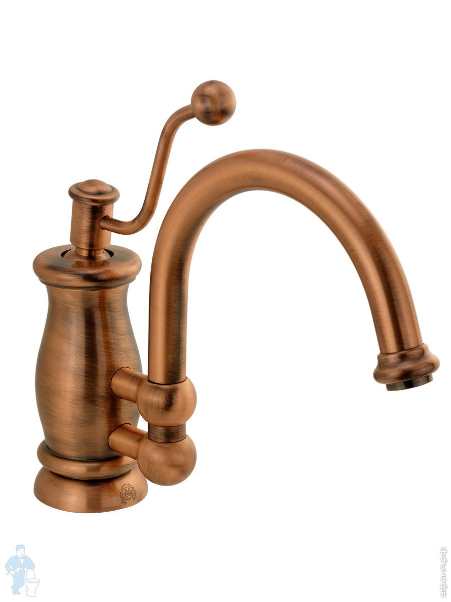 Экстравагантные смесители Vivaldi в стиле ретро, винтаж. Изящная изогнутая ручка с завершением в форме шарика и носик, словно на кронштейне закрепленный на корпусе смесителя, - действительно необычные дизайнерские решения.