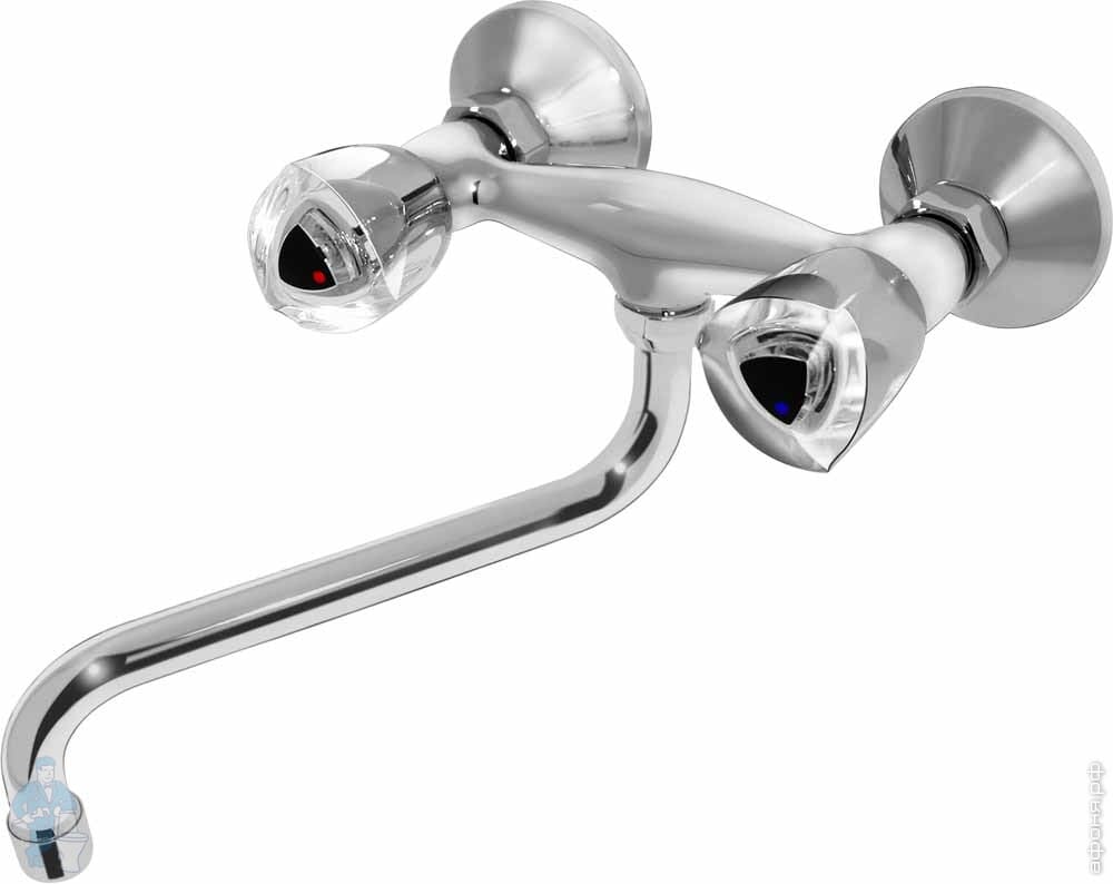 Смеситель для кухни настенный VARION Armaturen ХРОМ 1101 14 2 керам. кран-букса, s-образный излив