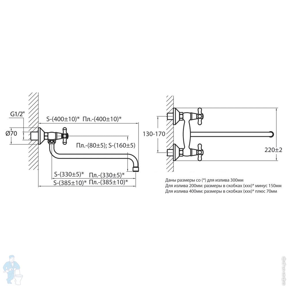 | Вид: | Смеситель | ПодВид: | Настенный смеситель |