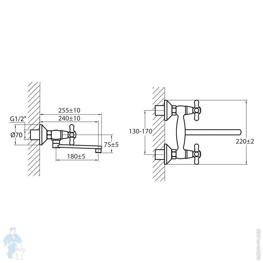 | Вид: | Смеситель | ПодВид: | Настенный смеситель |