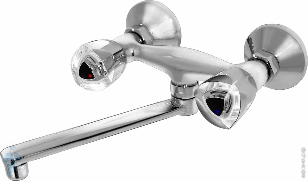 Смеситель для кухни настенный VARION Armaturen ХРОМ 1105 14 1 резин. кран-букса, плоск. излив 220мм