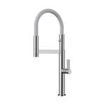 Длина высокого поворотного излива увеличивается по желанию за счёт шланга на магните.