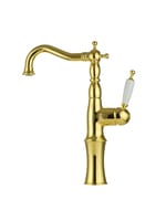 Смеситель для раковины Migliore OXFORD высокий, ручка белая, золото 19174 (ML.OXF-6317.BI.DO)