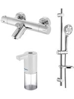 Смеситель для ванны Swedbe Mercury 9061 термостат+Душ.комплект Calypso 5078 6 реж.+Сенс.дозатор 0102
