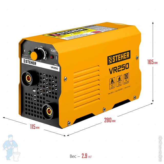 Сварочный аппарат STEHER VR-250, 250 А, инверторный, электрод d=5 мм