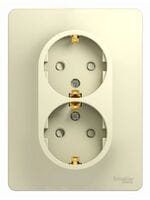 - Розетка двойная Systeme Electric (ранее Schneider Electric) серии Glossa (в сборе, цвет бежевый) с заземлением и шторками подходит для сетей 250 В, на ток 16 А.