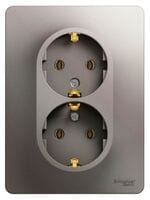 - Розетка двойная Systeme Electric (ранее Schneider Electric) серии Glossa (в сборе, цвет платина) с заземлением, без шторок подходит для сетей 250 В, на ток 16 А.