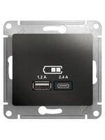 Розетка Systeme Electric GLOSSA USB A+С, 5В/2,4А, 2х5В/1,2 А, механизм, АНТРАЦИТ GSL000739