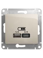 Розетка Systeme Electric GLOSSA USB A+С, 5В/2,4А, 2х5В/1,2 А, механизм, МОЛОЧНЫЙ GSL000939