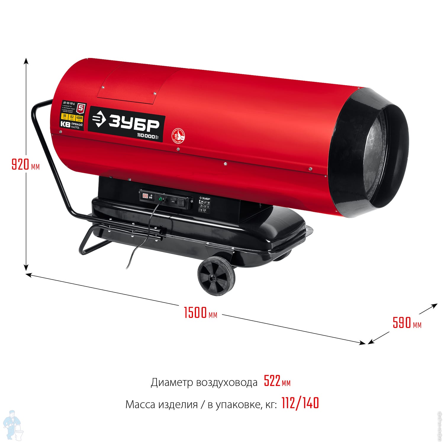 Тепловая пушка ЗУБР дизельная, прямого нагрева, 110 кВт, дисплей, ДП-К8-110-Д
