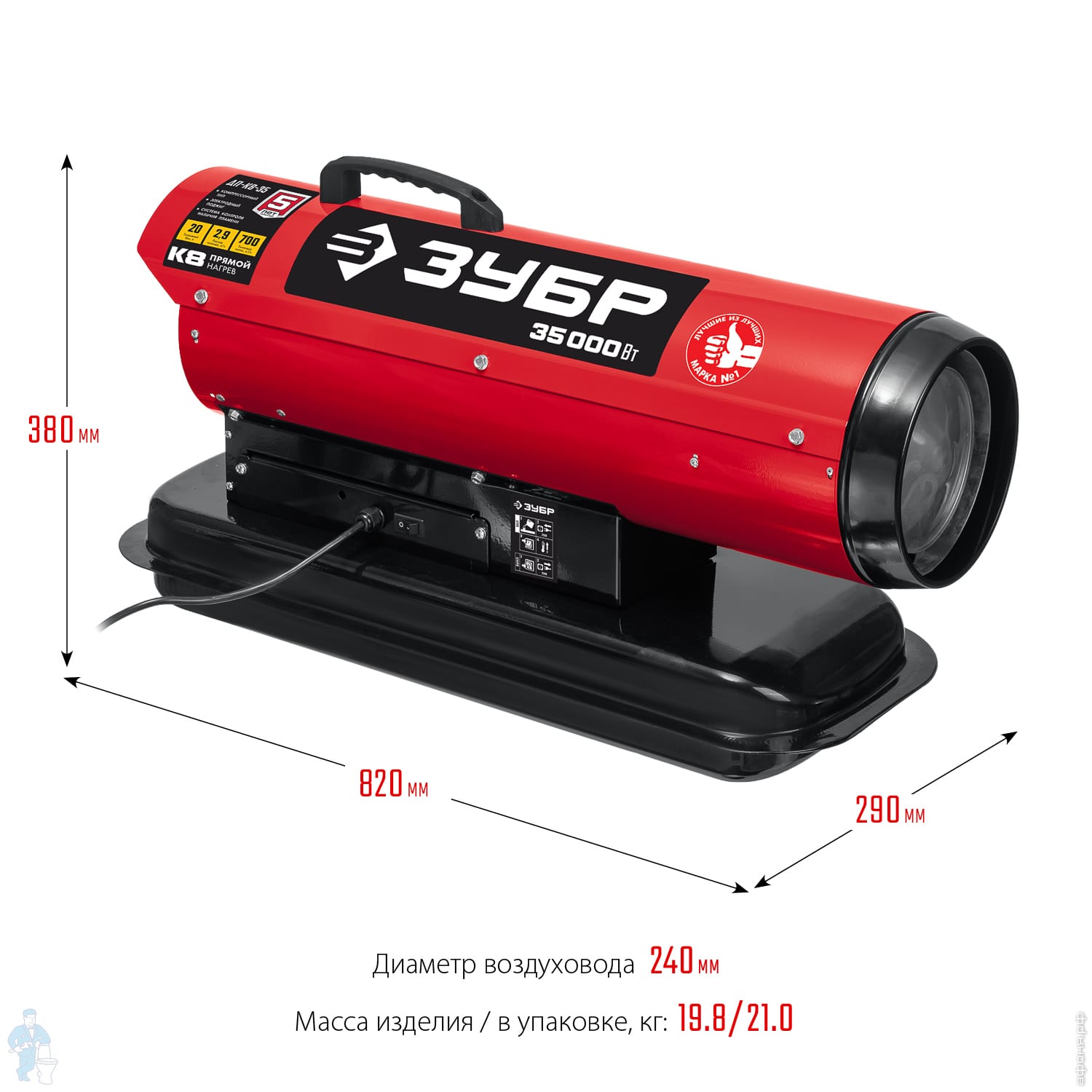 Высокоэффективный дизельный теплогенератор прямого нагрева работающий на дизельном топливе для всех климатических условий. Оптимально подходит для сушки и прогрева на строительных площадках складских комплексов и проветриваемых помещений. Надежный поджиг и эффективное горение гарантируют безотказную подачу тепла в любых условиях эксплуатации. ЗУБР - тепло всегда и везде