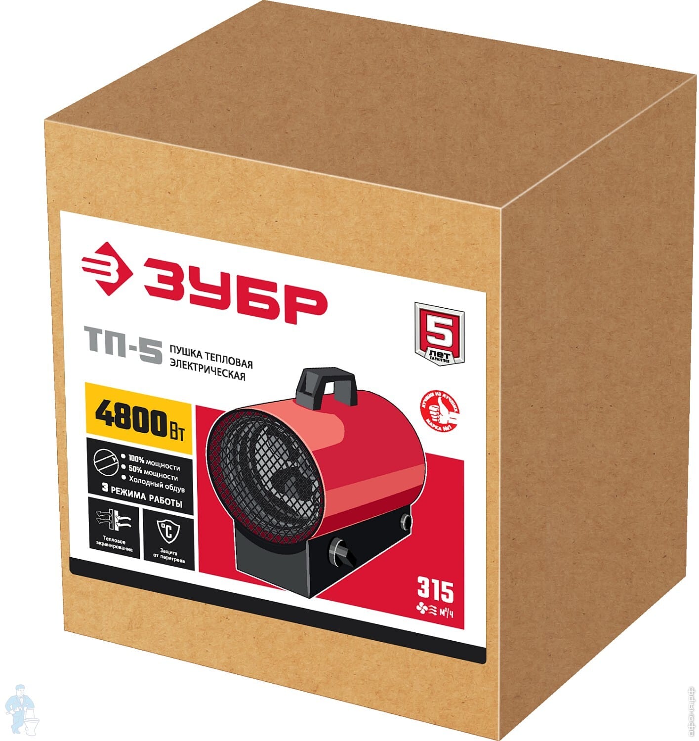 Тепловая пушка ЗУБР электрическая, 4.8 кВт, ТП-5