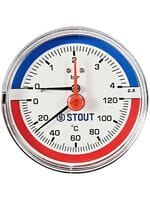Термоманометр STOUT 0-120*, 0-4 бар, 1/2", D80мм, зад.подкл. (аксиальное) в комплекте с автоматическим запорным клапаном SIM-1005-800415