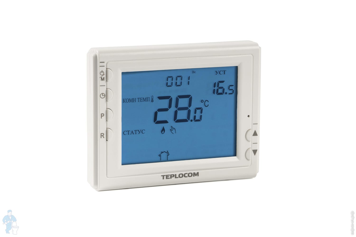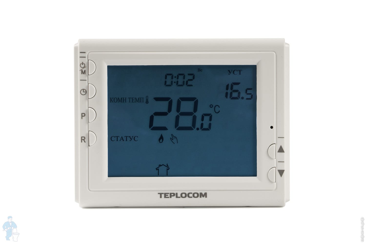 Не требует подведение электросети 220 В к термостату, так как питание осуществляется при помощи батареек. Заряда батарей хватает более чем на год - в схемотехнике используется экономичный режим энергопотребления и оптимального размера экран.