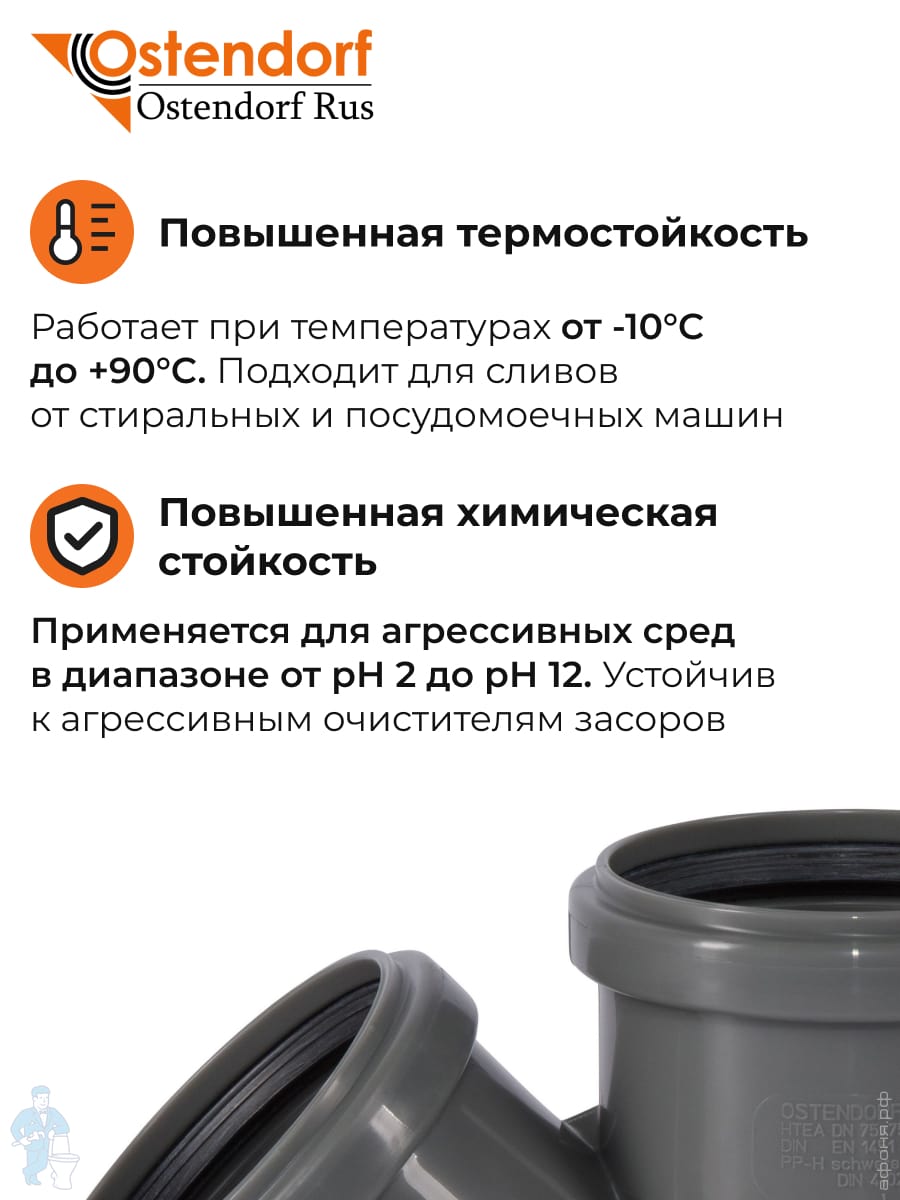 Тройник Ostendorf 75х75х45° серый, канализационный