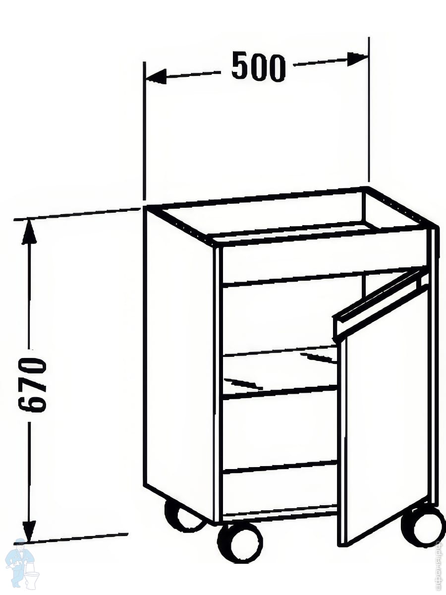 Тумба мобильная Duravit Ketho 500х670х360 петли справа, белый глянец KT2530R2222