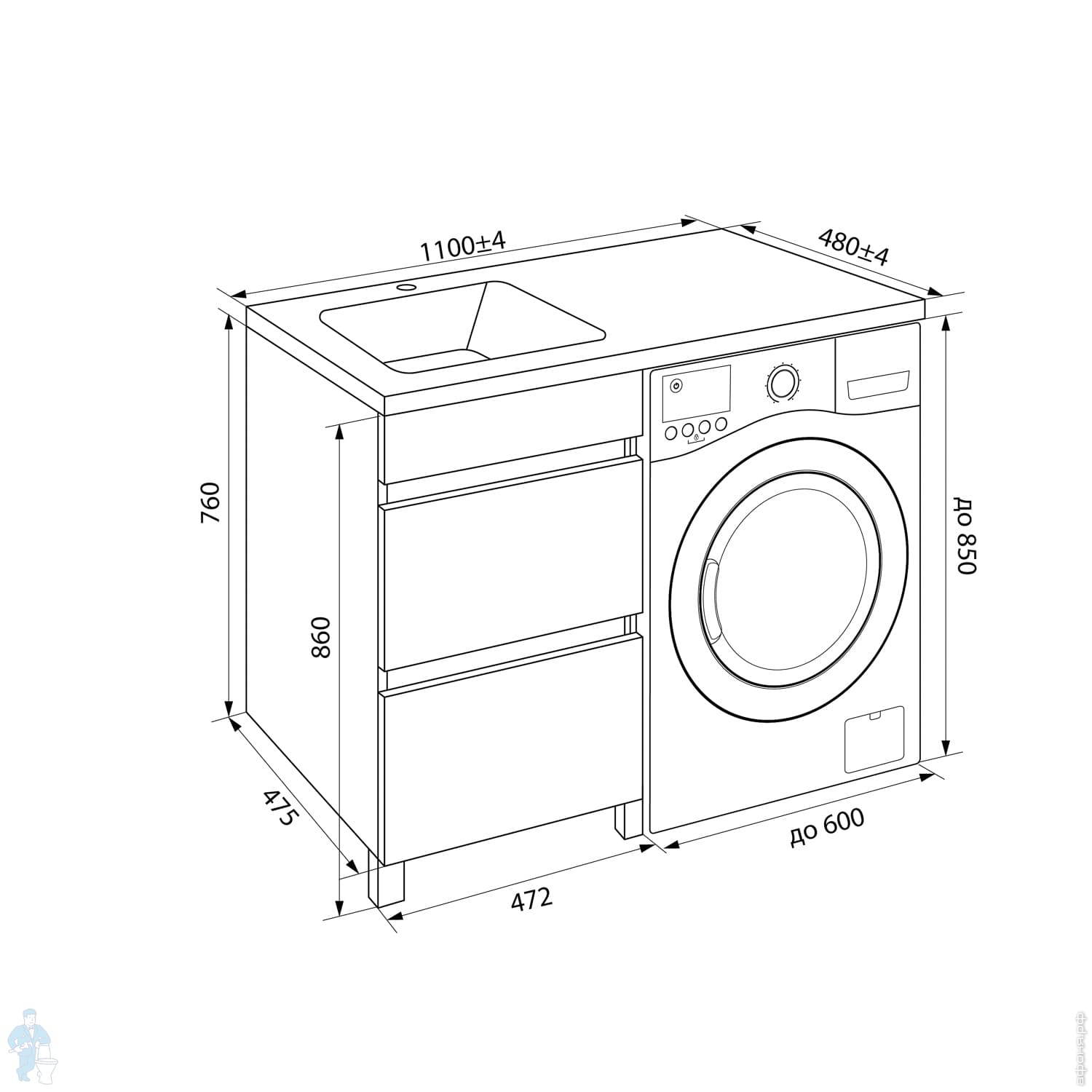 КонструкцияДля установки со стиральной машиной