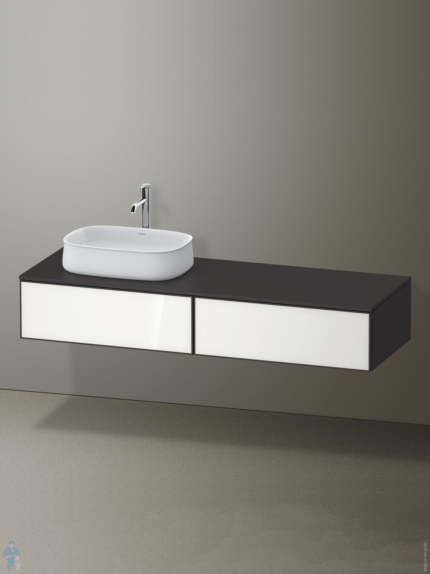 Тумба под раковину Duravit Zencha 281х1600х550мм, подвесная, цвет белый/черный ZE4814L64800000