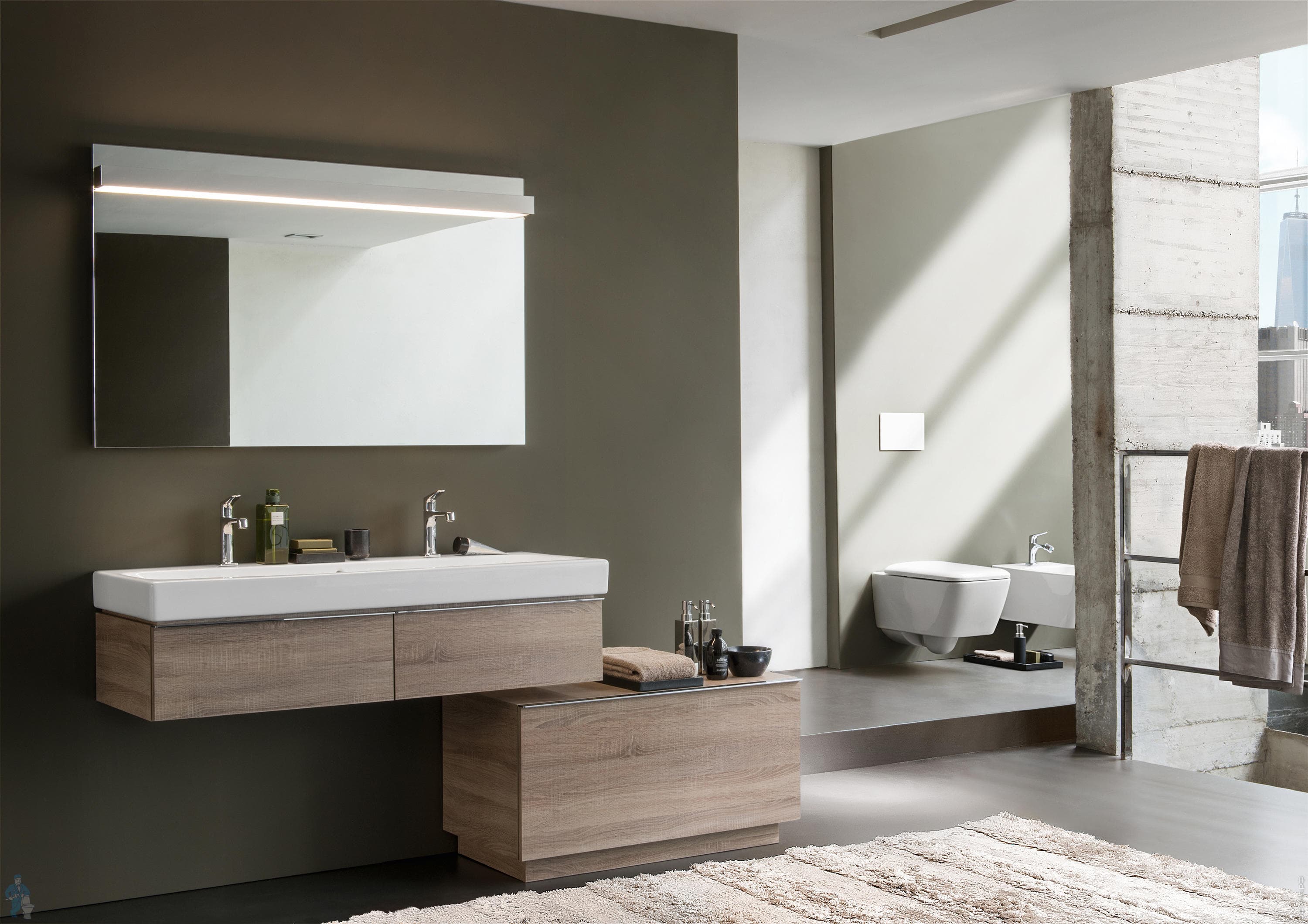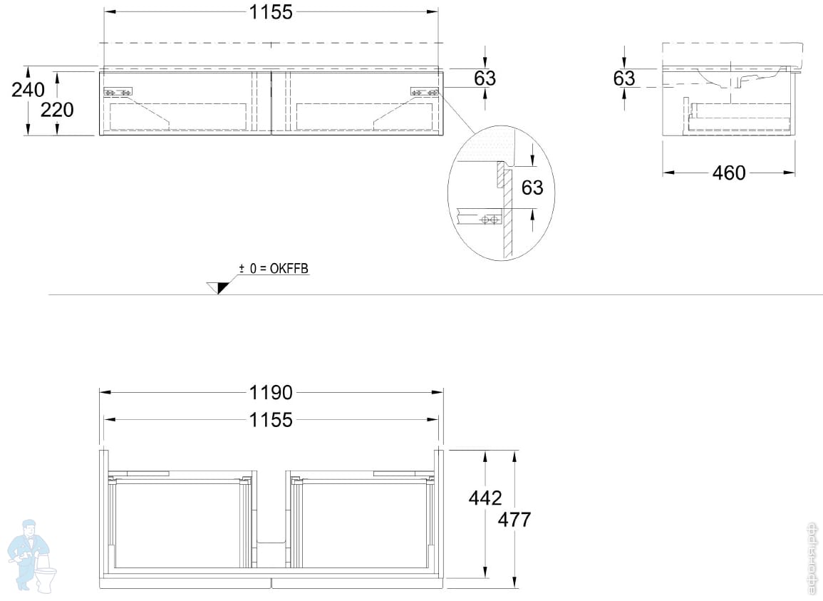 Тумба под раковину GEBERIT iCon (1190х240х477) с 2 ящиками, светлый дуб, матовый 841122000