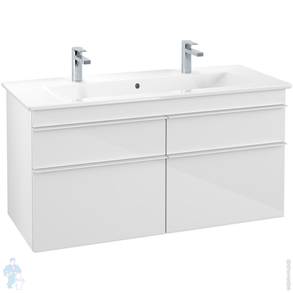 Тумба под раковину Villeroy & Boch VENTICELLO A929 02 DH (1153х590х502) 4 ящика, белый, белые ручки