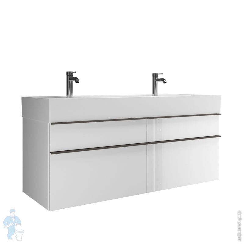 Тумба с двойной раковиной Burgbad Yumo 1315х610х470 подвесная, 4 ящика, белый глянец SFKO132F3193