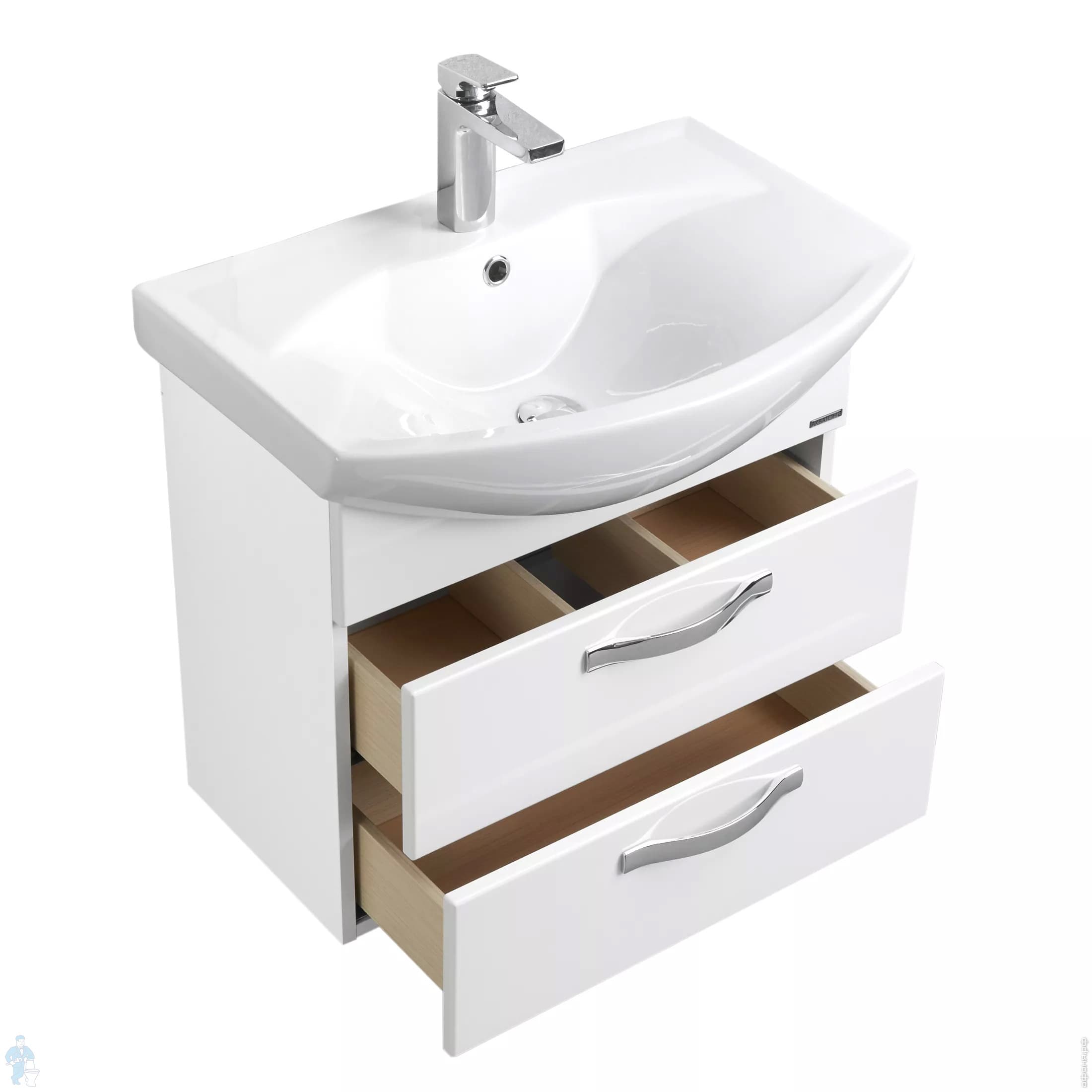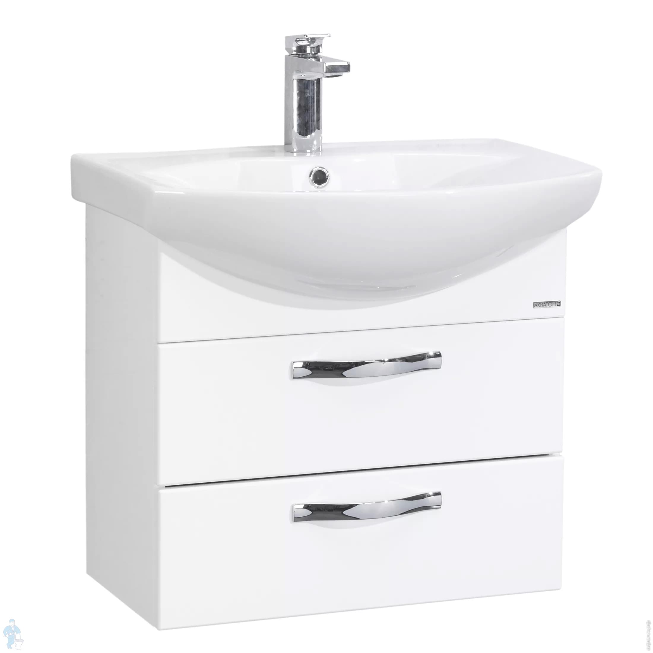 Тумба с раковиной AQUATON Ария 65 М 1A1233K0AA010 594x310x542 подвесная, 2 ящика, белый глянец (1A123301AA010+1WH207782)